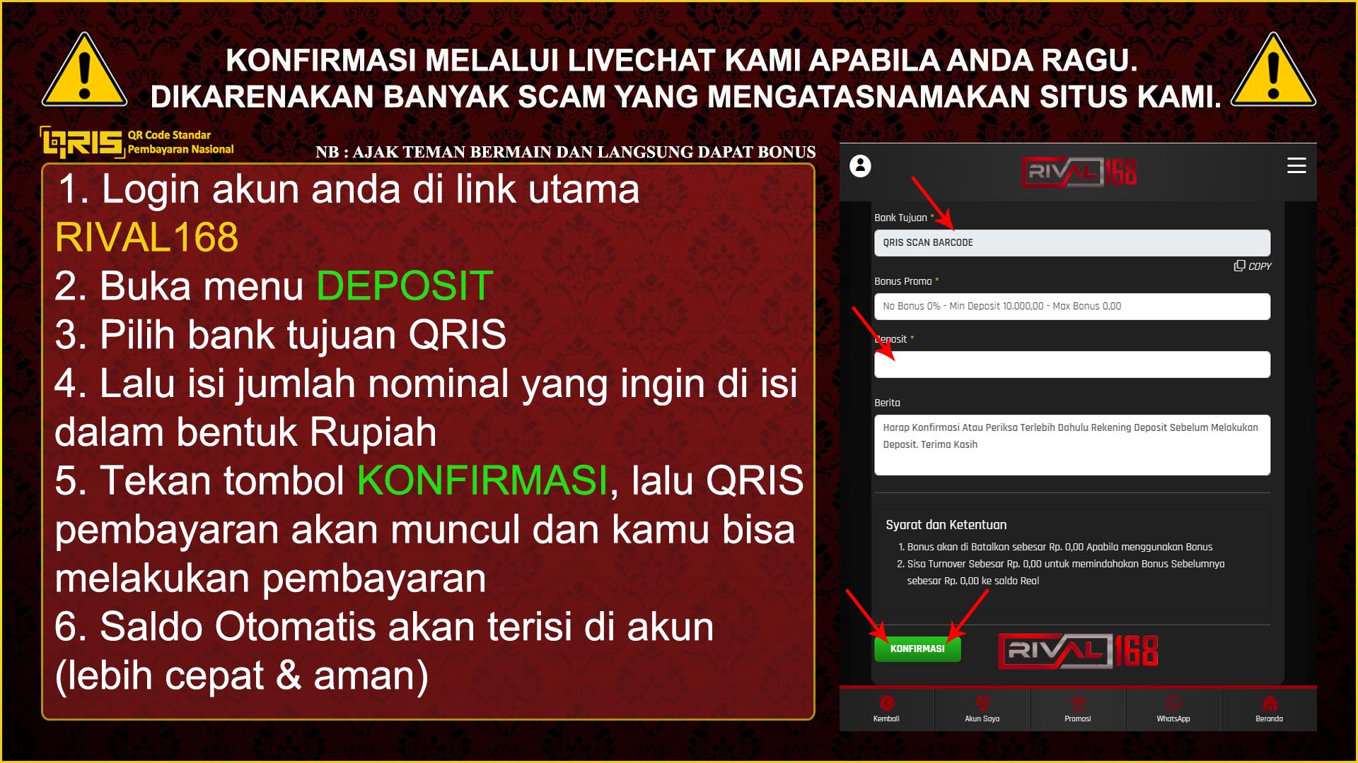Proses transaksi di RIVAL168 menggunakan sistem otomatis, sehingga Deposit dan Withdraw hanya butuh hitungan detik. Dukungan metode lengkap: